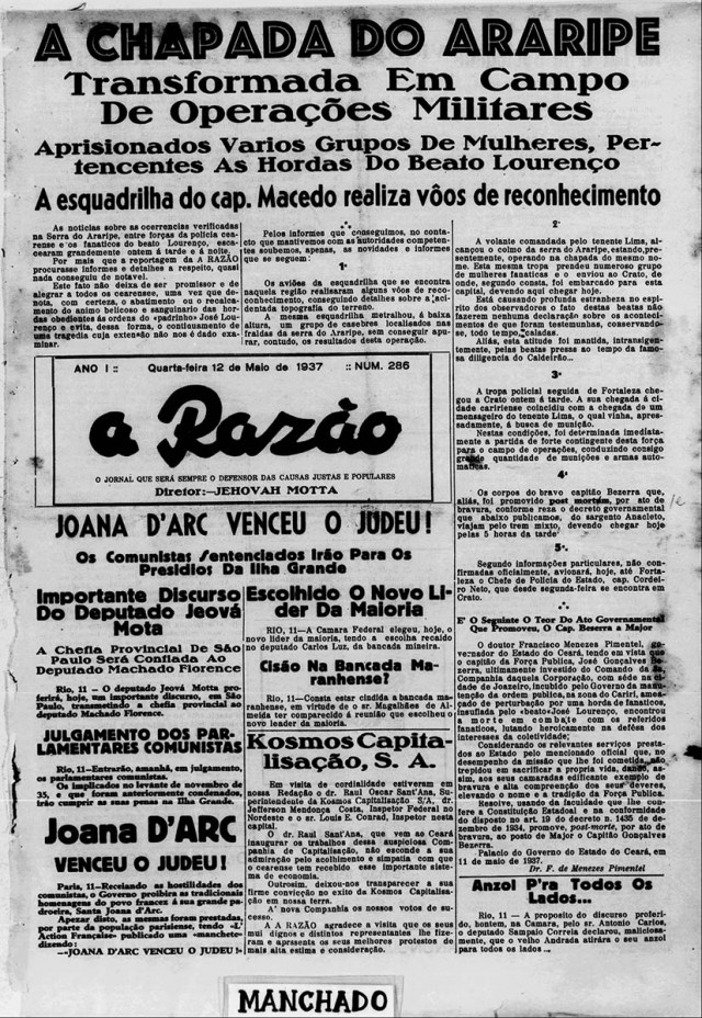 Em 11 de maio de 1937, um ruído no céu da chapada do Araripe assustou os camponeses. Com medo, eles tentavam se esconder entre as árvores enquanto máquinas voadoras deslizavam pelos ares daquela região do Cariri, no sul do Ceará. Homens, mulheres e crianças fugiam de algo que, com certeza, viam pela primeira vez. O desespero foi ainda maior quando os aviões da Força Aérea Brasileira (FAB) começaram a metralhar. Muitos ali devem ter sussurrado o derradeiro pai-nosso. Outros nem tiveram tempo para tanto.